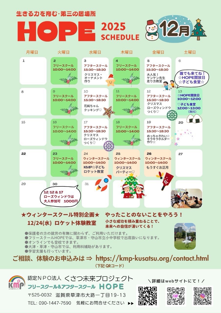 HOPEアフター&ウインタースクール☆参加者募集中☆☆